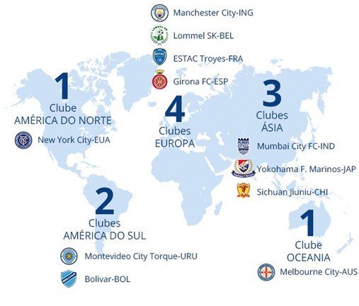 O Manchester City é o melhor exemplo para falar dos multiclubes. O time inglês é o principal nome do City Football Group, que reúne 11 clubes comandados por um mesmo dono, com dois modelos diferentes. Em 6 deles o grupo é o acionista majoritário, e no restante serve de apoio através do conhecimento na indústria. A inovação surge, neste caso, da possibilidade de aumentar o repertório, trocando experiências com profissionais de diversos pontos do mundo. Voltando para o ranking como um todo, 17 das 25 instituições possuem um dono que comanda outros clubes, incluindo o Manchester City.