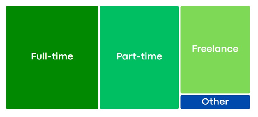 Infelizmente, uma das conclusões é de que apenas 37% dos inquiridos tinham um trabalho a tempo integral.