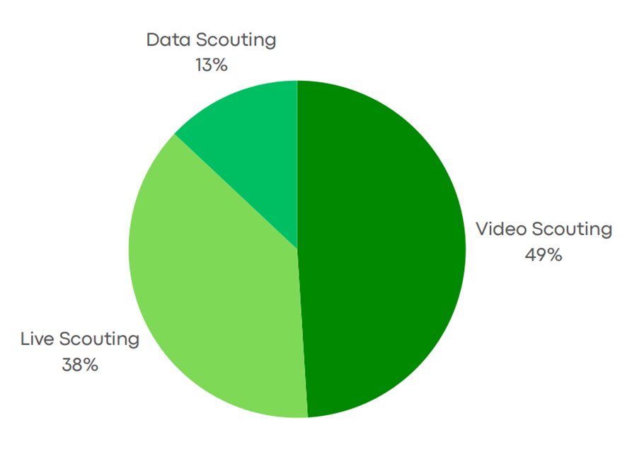 Outra das conclusões do estudo é que a percentagem de scouts que fazem análise de dados continua sendo muito pequena (13%). Mostra que ainda existe muito potencial para evolução da análise de dados no futebol e, em particular, para a análise de desempenho e análise de mercado.