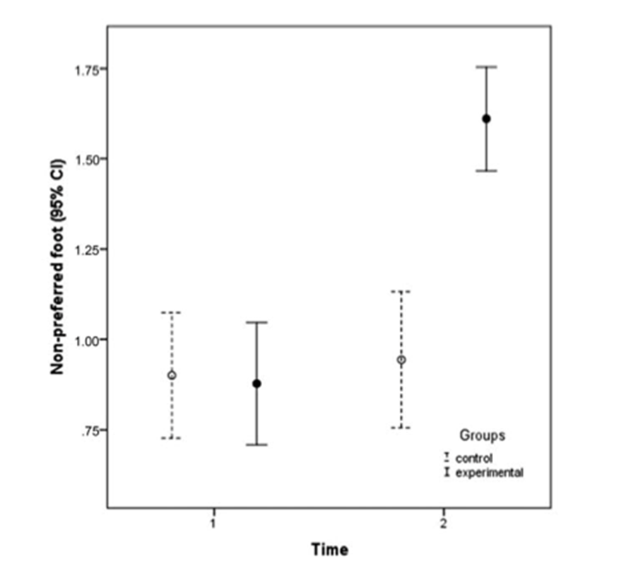 A metodologia da pesquisa se baseou em ter dois grupos: um controle e um experimental. O grupo controle não teria qualquer tipo de treino diferente, enquanto que o grupo experimental iria fazer treinos analíticos com a perna não-dominante. Os dois grupos foram expostos a jogos antes e depois deste período de intervenção.