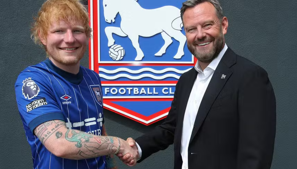 Outro britânico que resolveu investir em um clube foi Ed Sheeran. Ano passado, o cantor adquiriu 1,4% do controle acionário do seu time do coração, o Ipswich Town. Com isso, Ed Sheeran tem direito a camarote exclusivo no estádio Portman Road, casa do clube inglês, entretanto, como sua parte de investimento é mínima, não fará parte da diretoria.